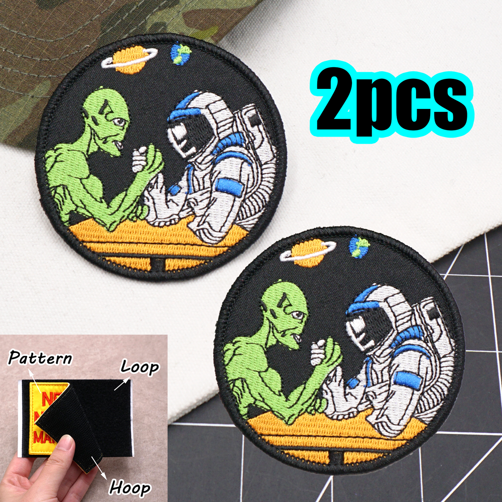 2PCS Alien and astronaut wrist wrestling Funny science fiction Embroidery Patch CC25-3