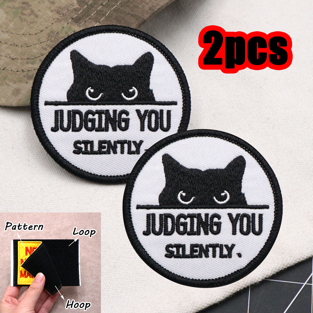 2PCS Black Cat Embroidery Patch JUDGING YOU SILENTLY CC18-2