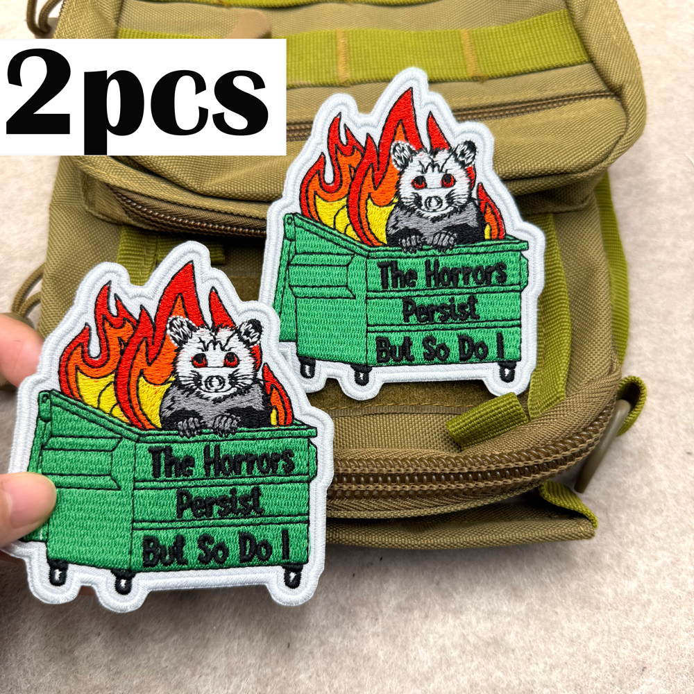 2PCS burning trash can flame possum Embroidery Patch The Horrors Persist But So Do I CB68-1