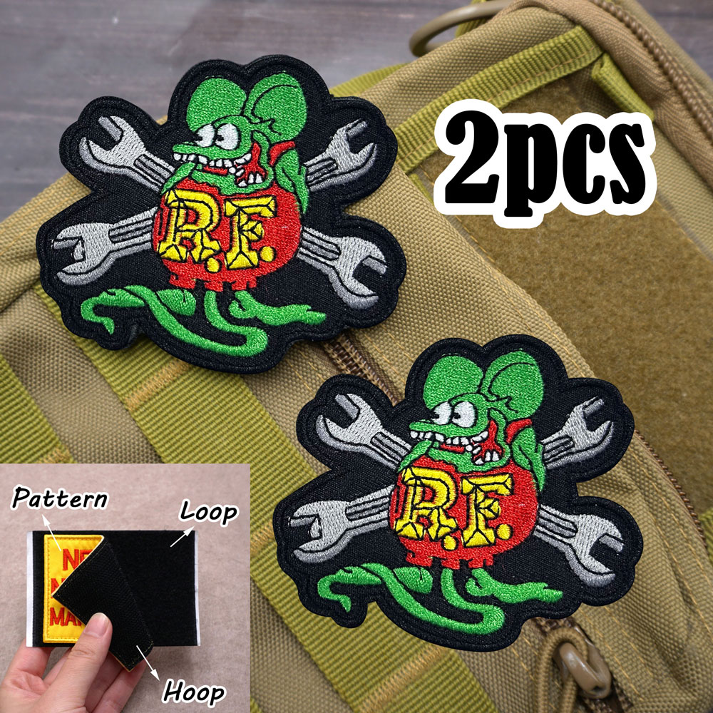 2PCS Cartoon Mouse Rat Fink Punk Embroidery Patch CC68-3