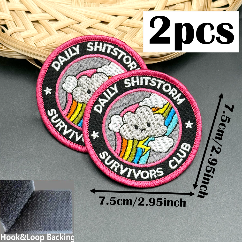 2PCS Daily Shitstorm Survivors Club Rainbow cloud smiling face Embroidery Patch CB29-2