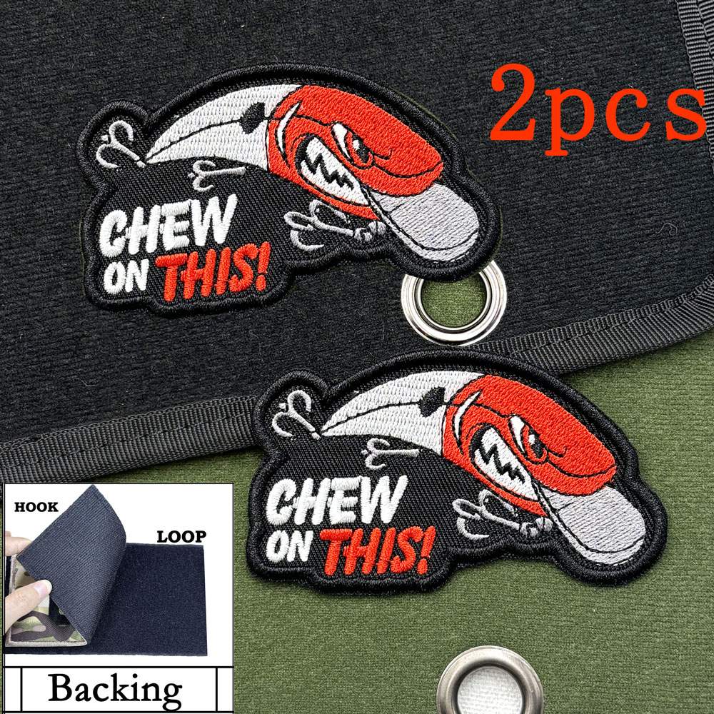 2PCS Fishing Embroidered Patch CHEW ON THIS! CA24-3