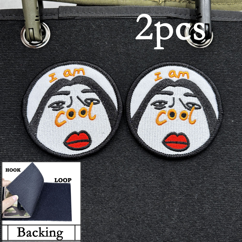 2PCS Funny Big Face Emojis I am cool Embroidered Patch CA13-1