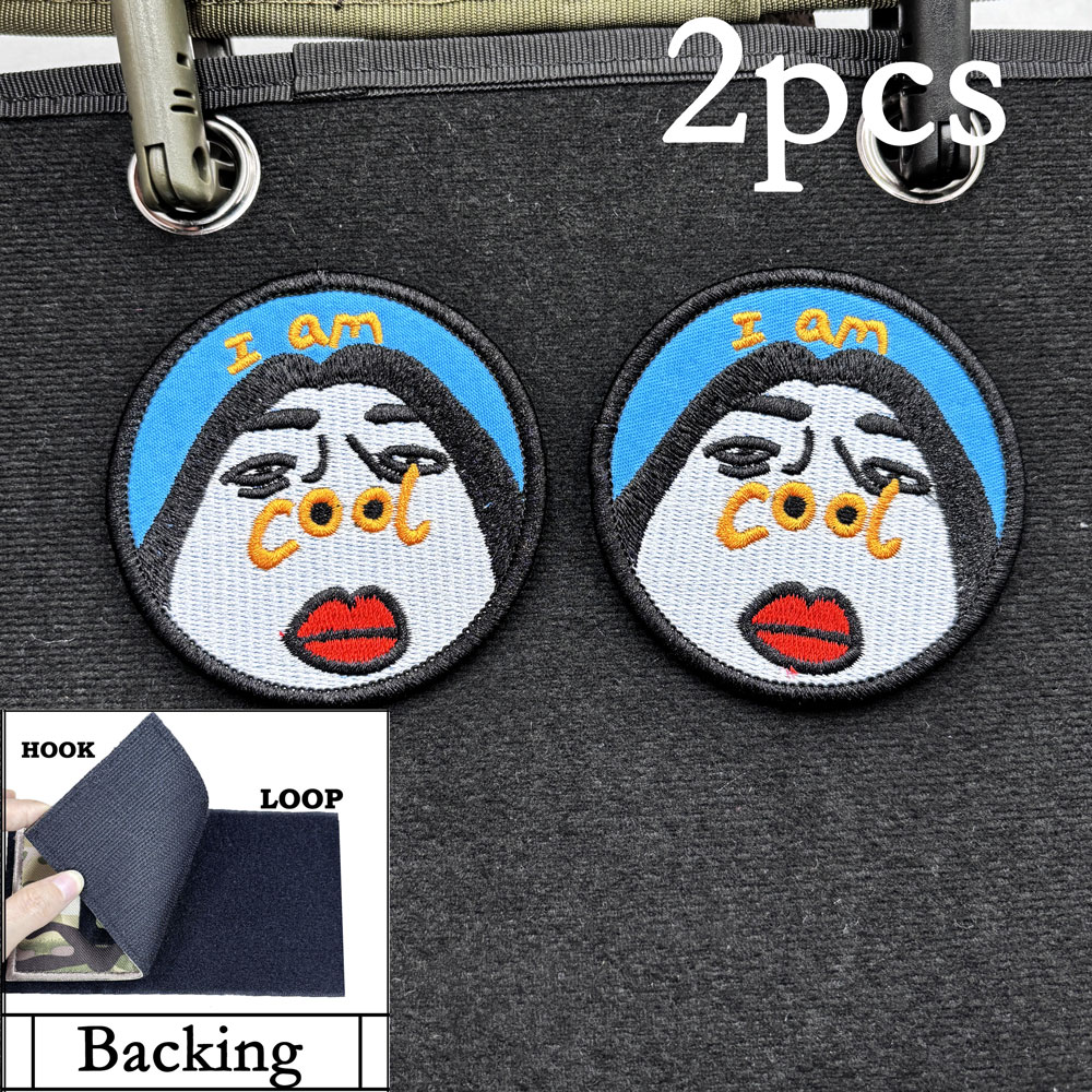 2PCS Funny Big Face Emojis I am cool Embroidered Patch CA14-1