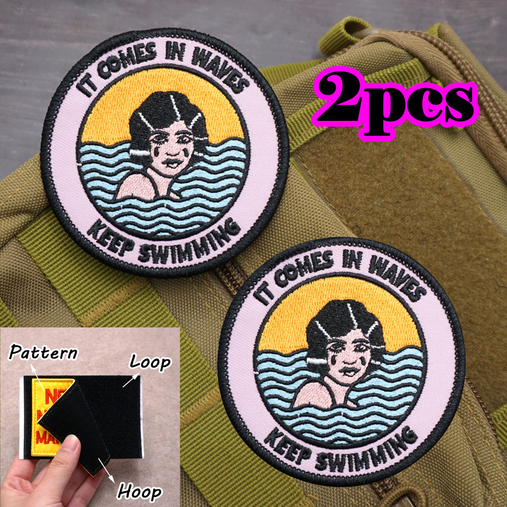 2PCS Funny Embroidery Patch IT COMES IN WAVES KEEP SWIMMING CC31-1