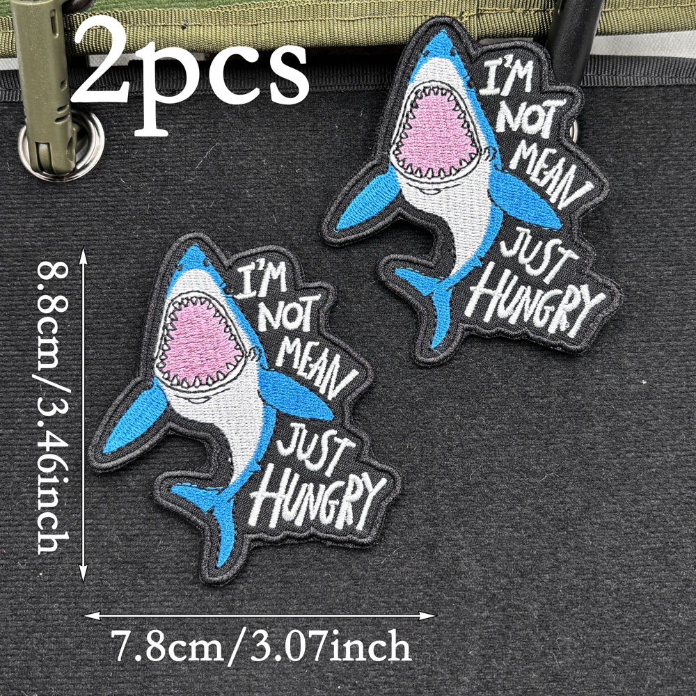 2PCS Funny Shark Embroidered Patch I'M NOT MEAN JUST HUNGRY CA4-1