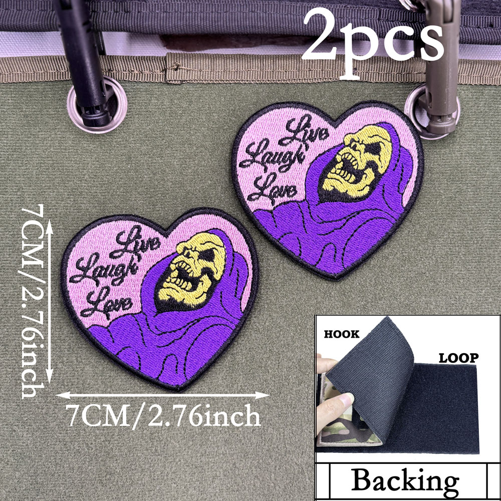 2PCS Funny Skull Hear Embroidered Patch Live Laugh Love CA16-1