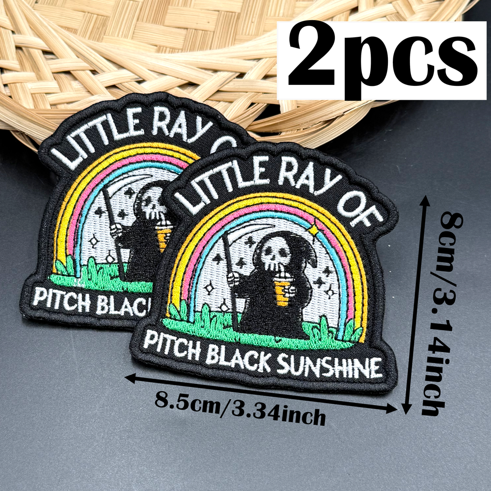 2PCS Grim Reaper Embroidery Patch LITTLE RAY OF PITCH BLACK SUNSHINE CB24-2
