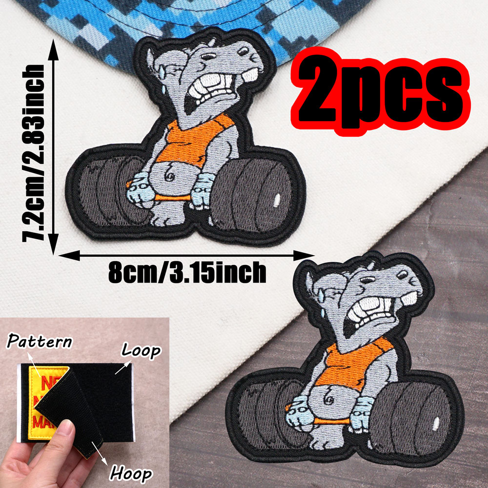 2PCS Hippo Barbell Fitness Embroidery Patch CC13-2