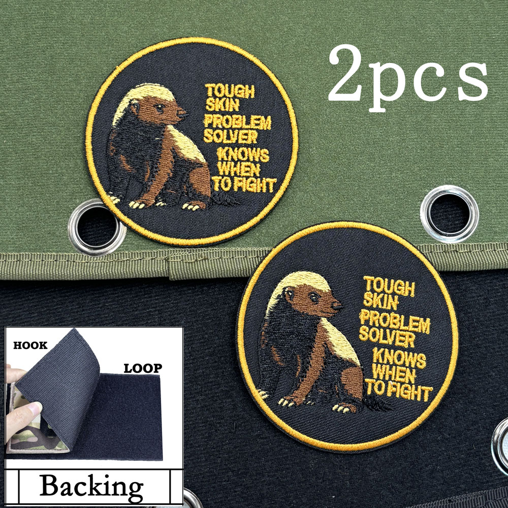 2PCS Honey Badger Embroidery Patch TOUGH SKIN PROBLEM SOLVER KNOWS WHEN TO FIGHT CA39-2