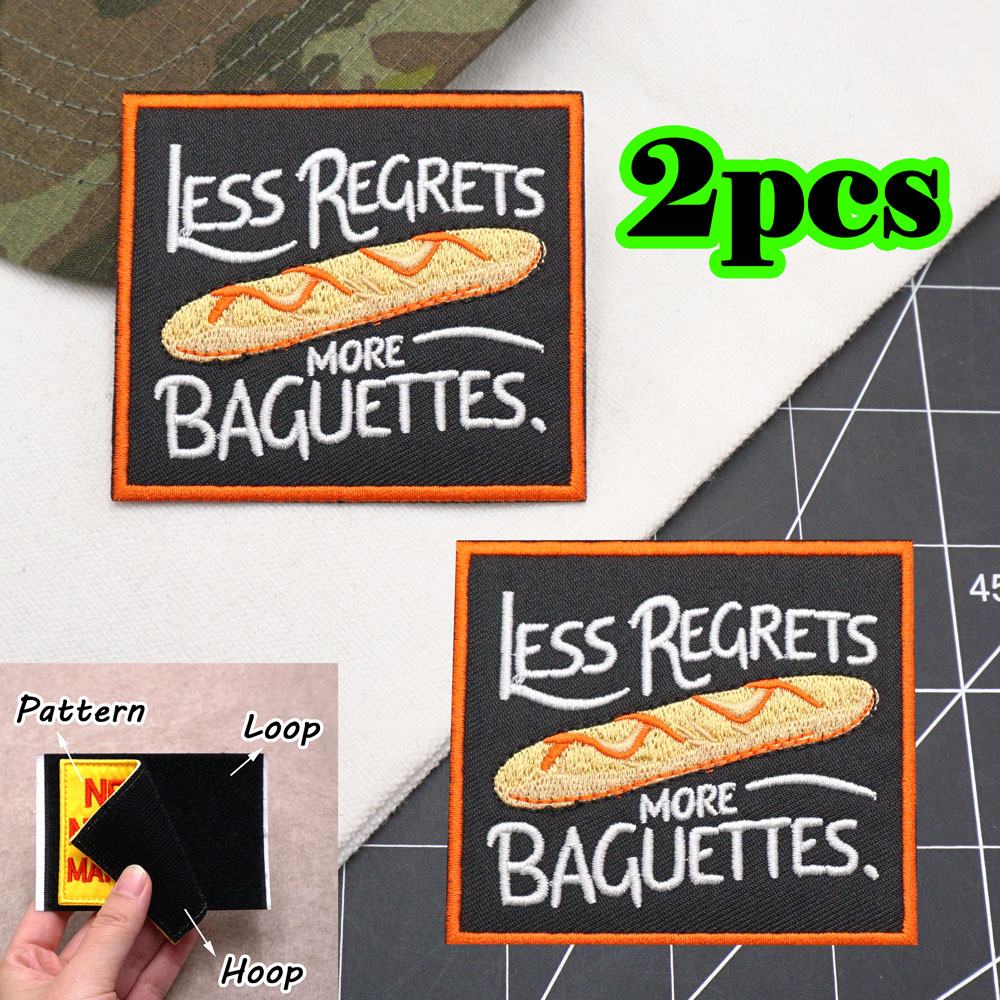 2PCS Less regrets, More baguettes Funny Embroidery Patch CC29-1
