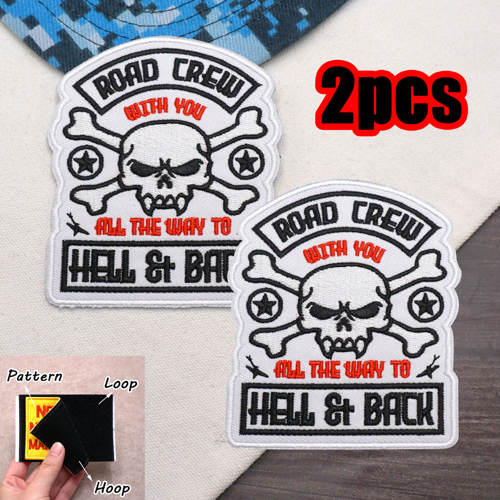 2PCS Rock Road Band Embroidery Patch ROAD CREW WITH YOU ALL THE WAY TO HELL & BACK CC18-3