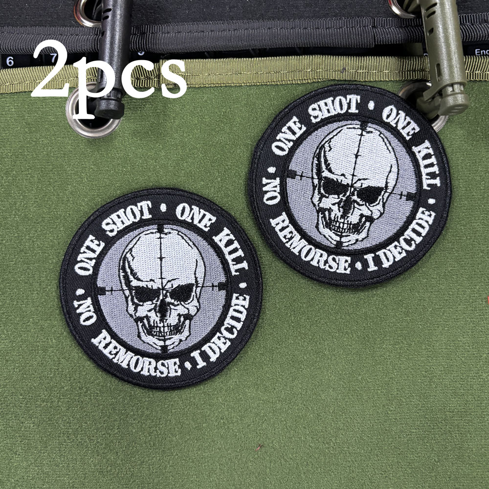 2PCS Skull Embroidered Patch ONE SHOT ONE KILL NO REMORSE I DECIDE CA23-1