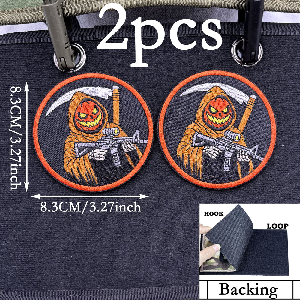 2PCS Tactical Reaper Halloween Skeleton Pumpkin Embroidered Patch CA5-1