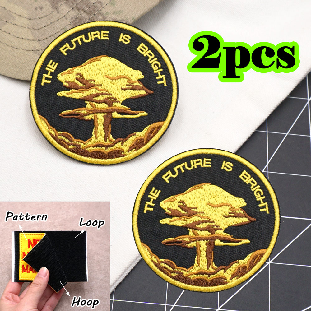 2PCS THE FUTURE IS BRIGHT Nuclear explosion mushroom cloud Tactical Embroidery Patch CC1-1