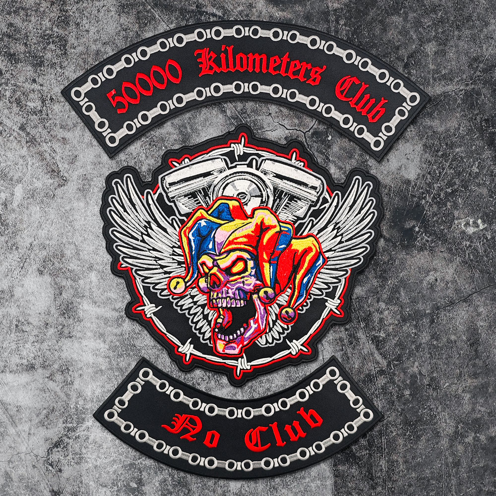 “50000 Kilometers Club No Club” clown skeleton Large Size Motorcycle Rider embroidery patch L76