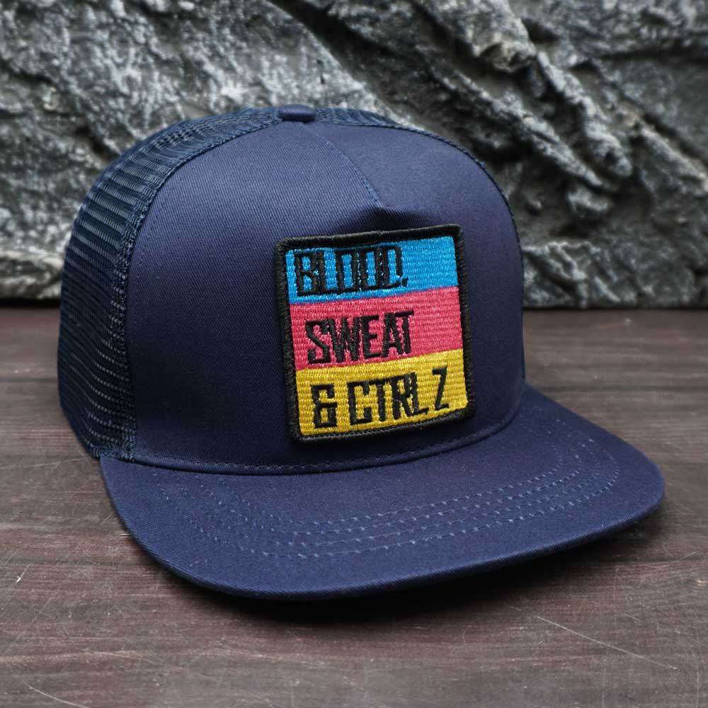 Classic “BLOOD, SWEAT & CTRLZ” Funny Embroidery Patch Trucker Cap PC25-2/A1