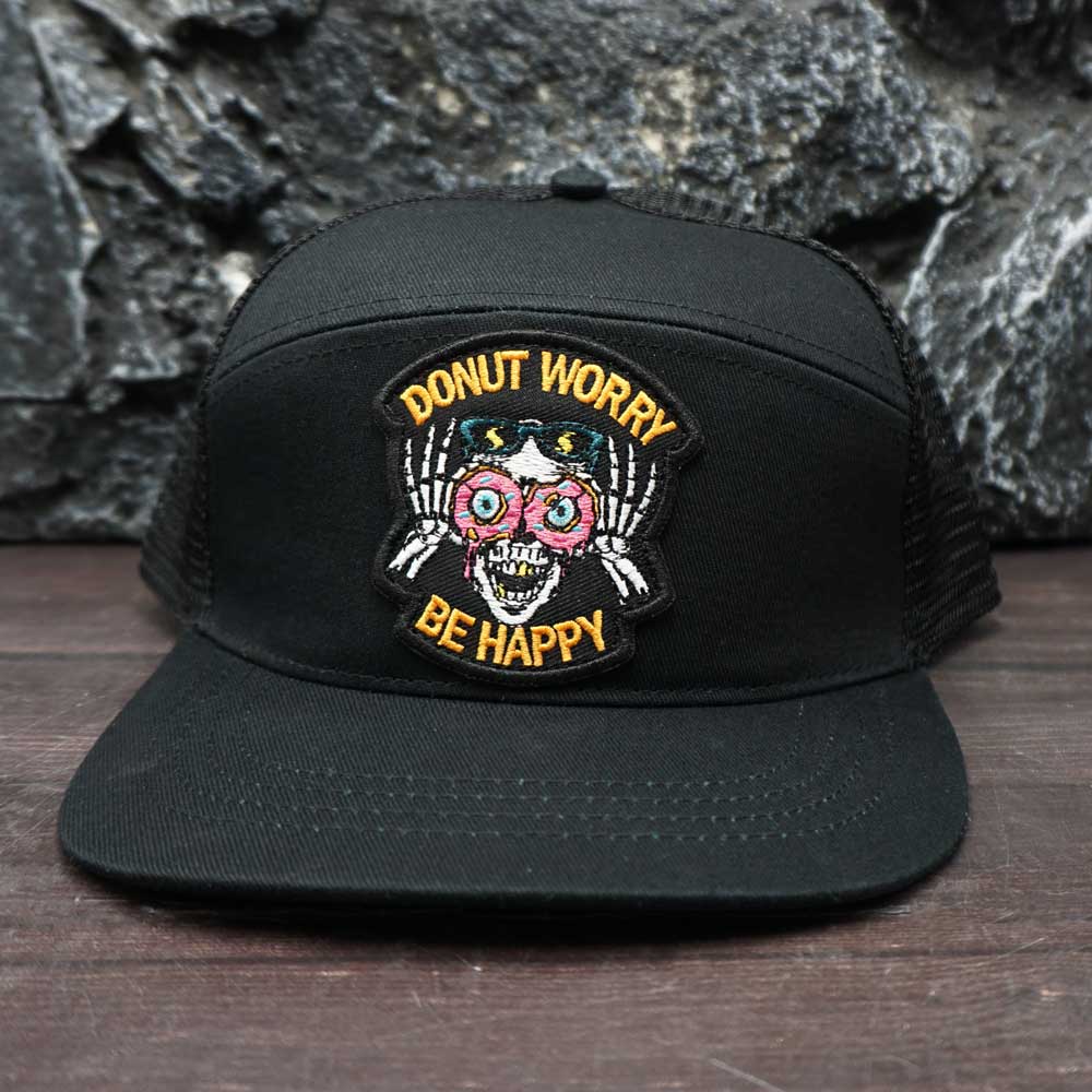 Classic “DONUT WORRY BE HAPPY” Skeleton Donut Embroidery Patch Trucker Hat PC65-1
