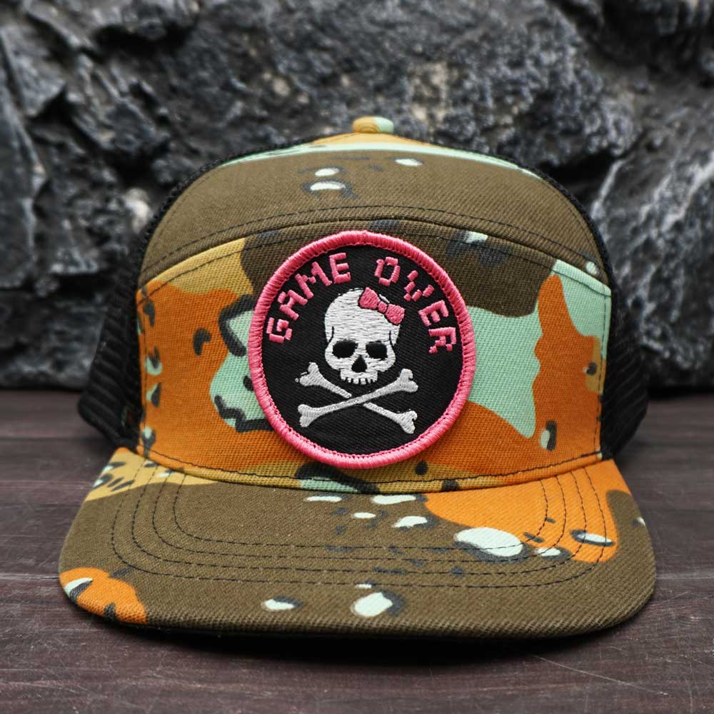 Classic “GAME OVER” Pink bowknot skull Embroidery Patch Trucker Hat PC47-1