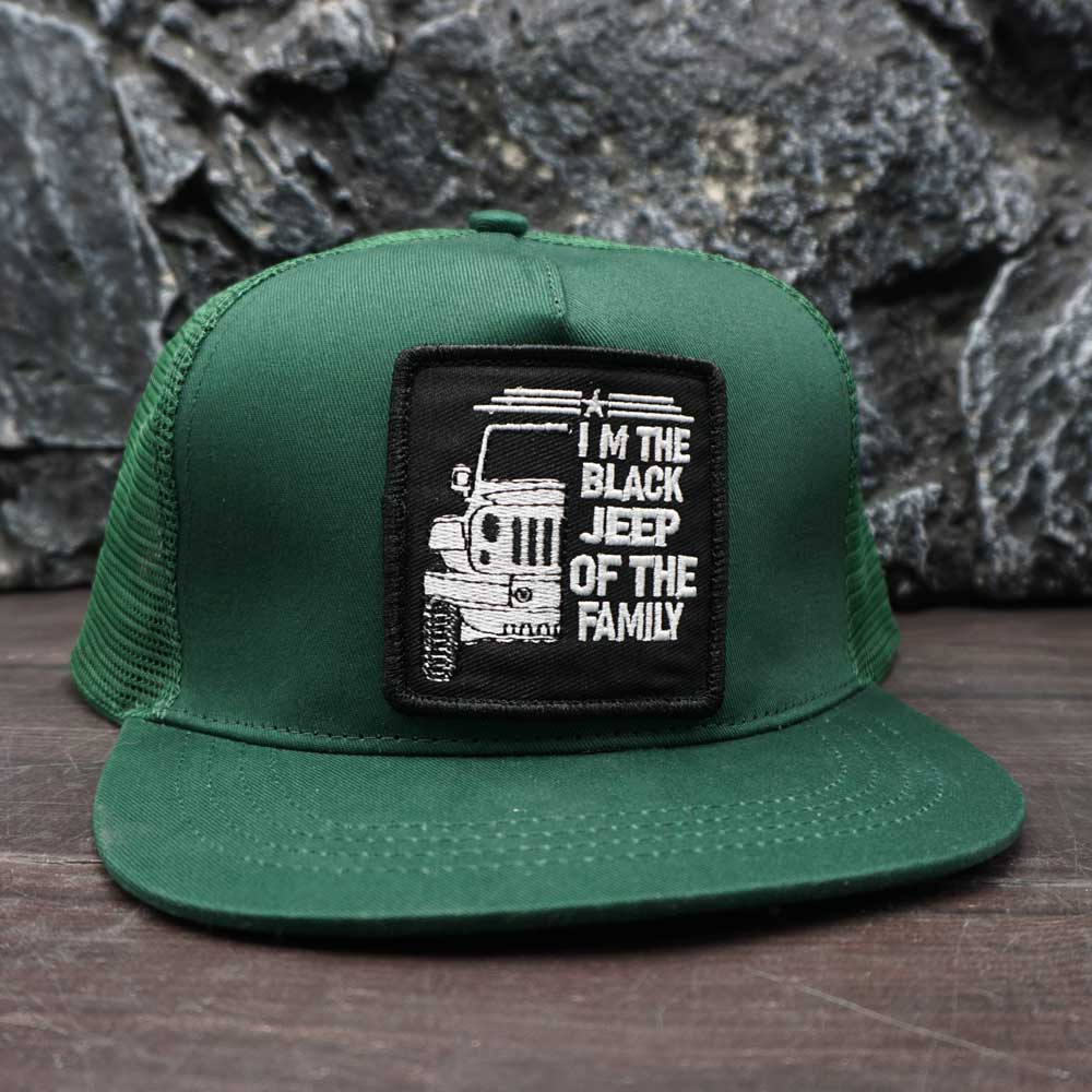 Classic “I’M THE BLACK JEEP OF THE FAMILY” off-road adventure Embroidery Patch Trucker Hat PC55-1