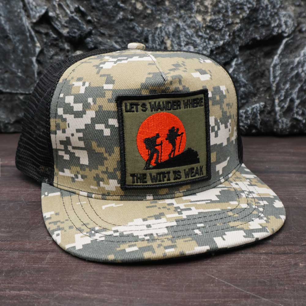 Classic “Let's wander where the WiFi is weak” Outdoor Hiking Adventure Embroidery Patch Trucker Hat PC74-1