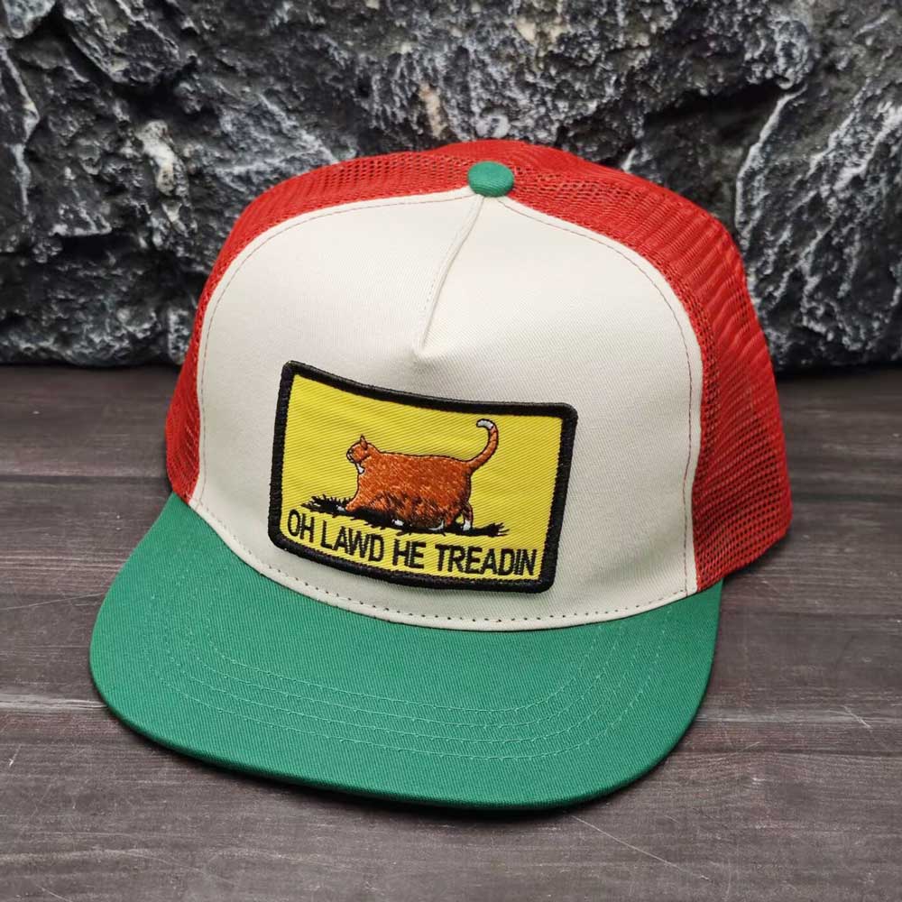 Classic "OH LAWD HE TREADIN" Ginger cat Embroidery Patch Trucker Hat PC78-1