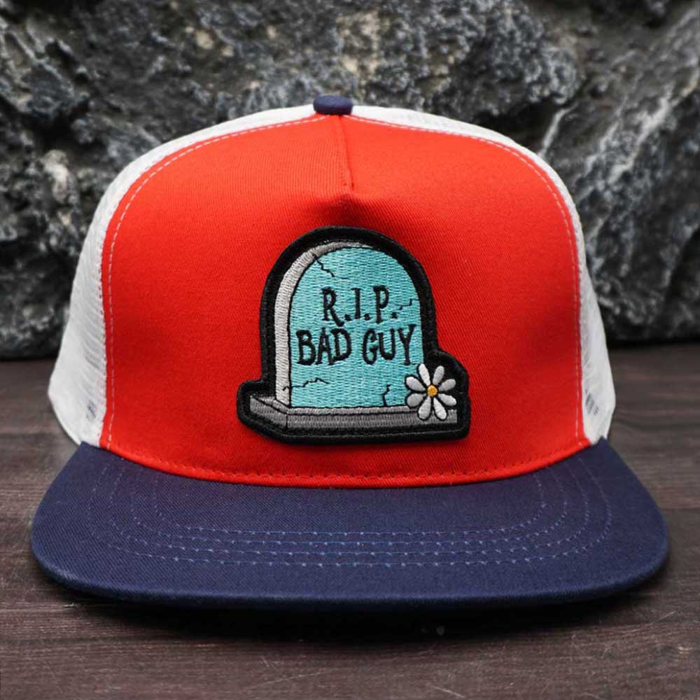 Classic “R.I.P. BAD GUY” tombstone memorial Embroidery Patch Trucker Hat PC48-1