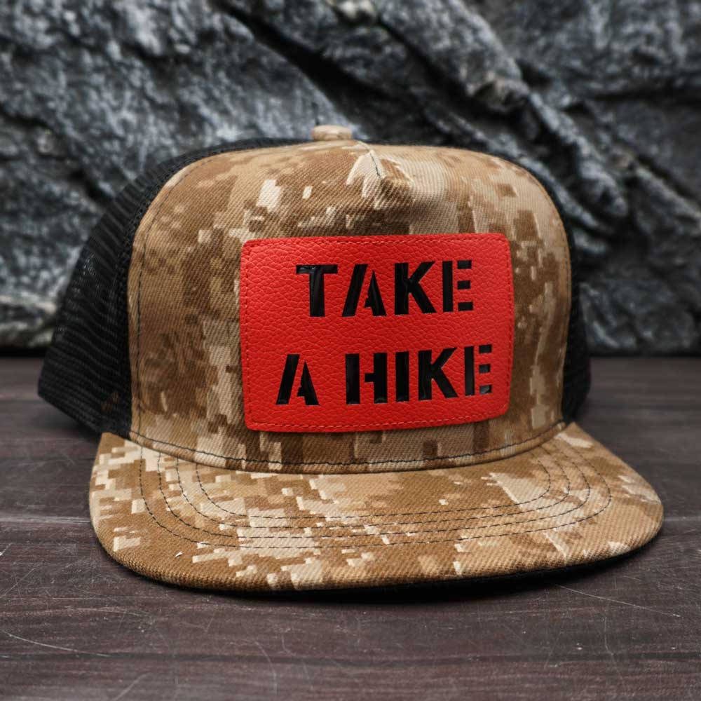 Classic "TAKE A HIKE" Outdoor Adventure Reflective Leather Patch Trucker Cap PC8-2/A4