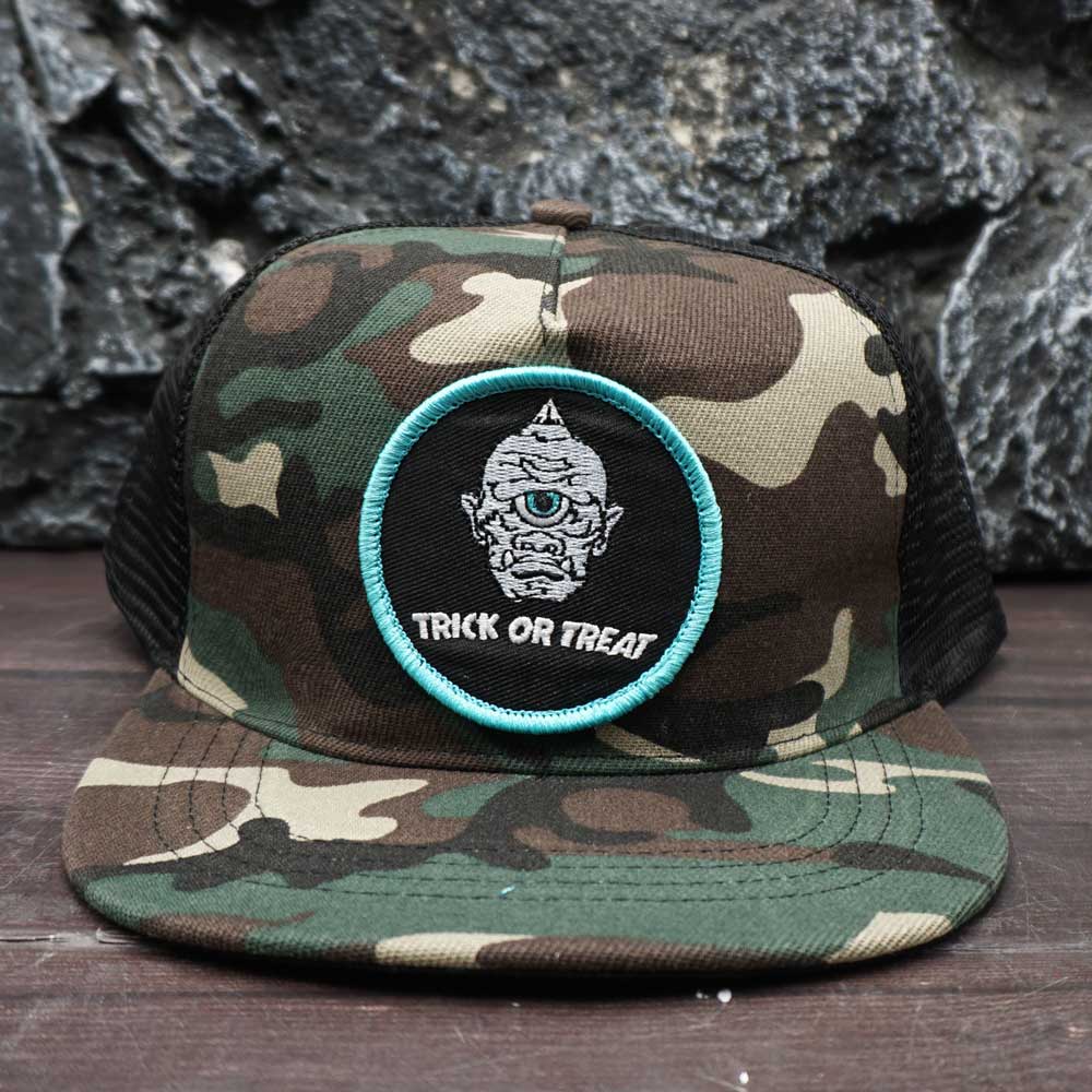 Classic “TRICK OR TREAT” Halloween Cyclops Demon Embroidery Patch Trucker Hat PC37-1