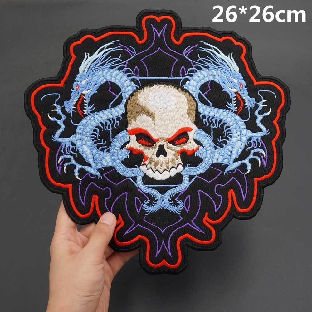 Double Blue Dragon Skeleton Large Size Motorcycle Rider embroidery patch L78