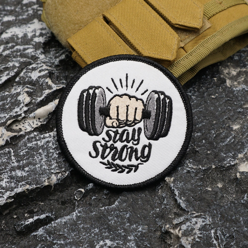 Dumbbell Fitness Embroidery Patch Stay Strong Flag12-54C