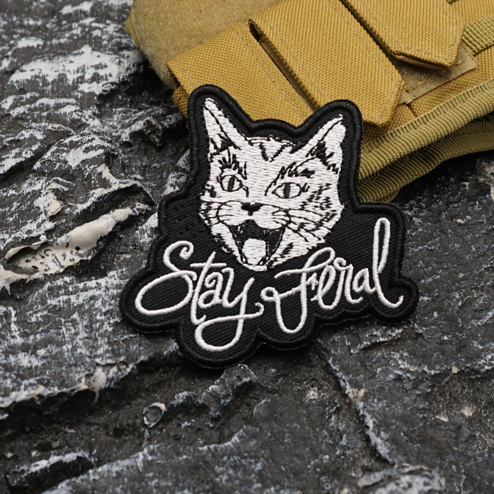 feral cat Embroidery Patch stay feral Flag12-17C