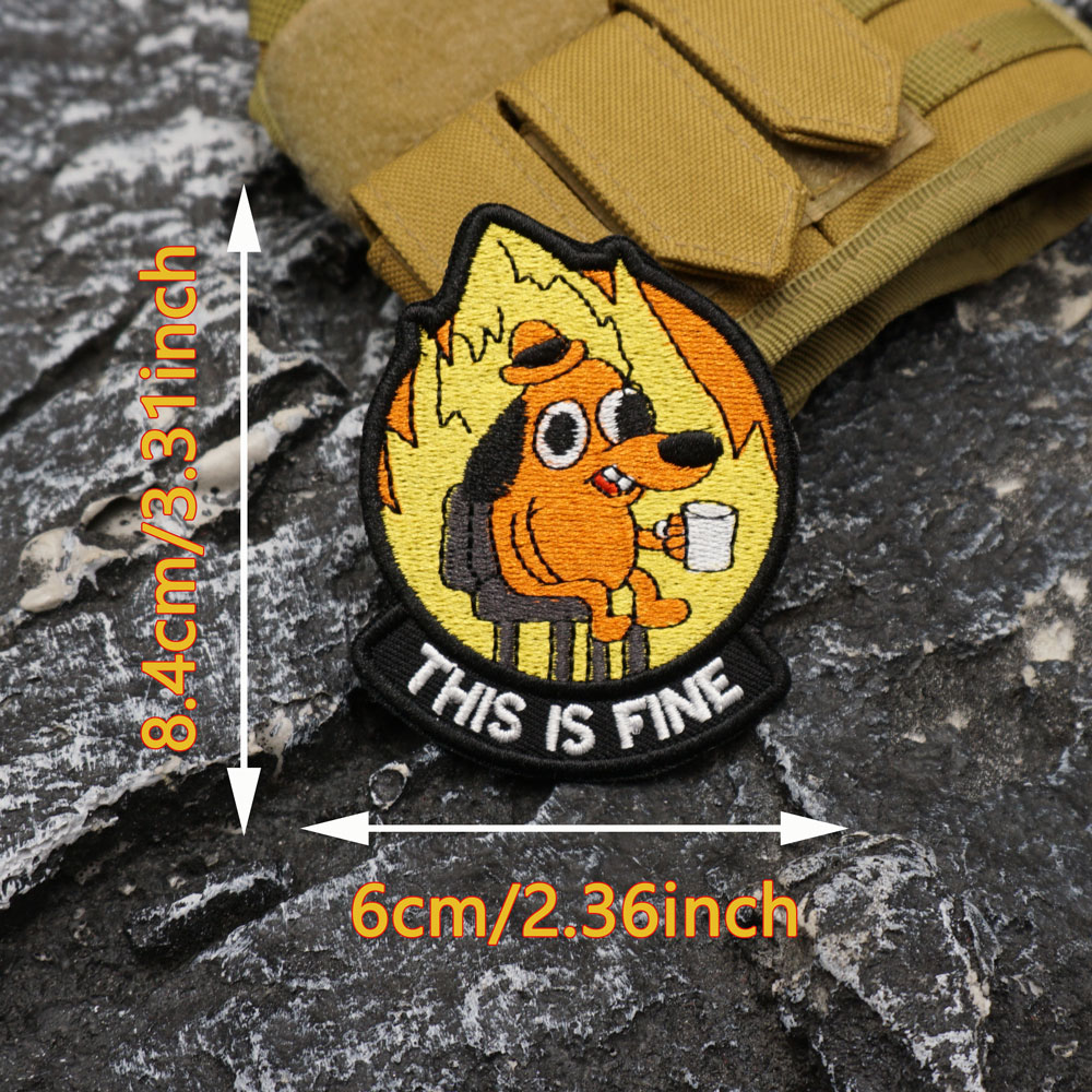 Flame Dog Embroidery Patch THIS IS FINE Flag12-4C