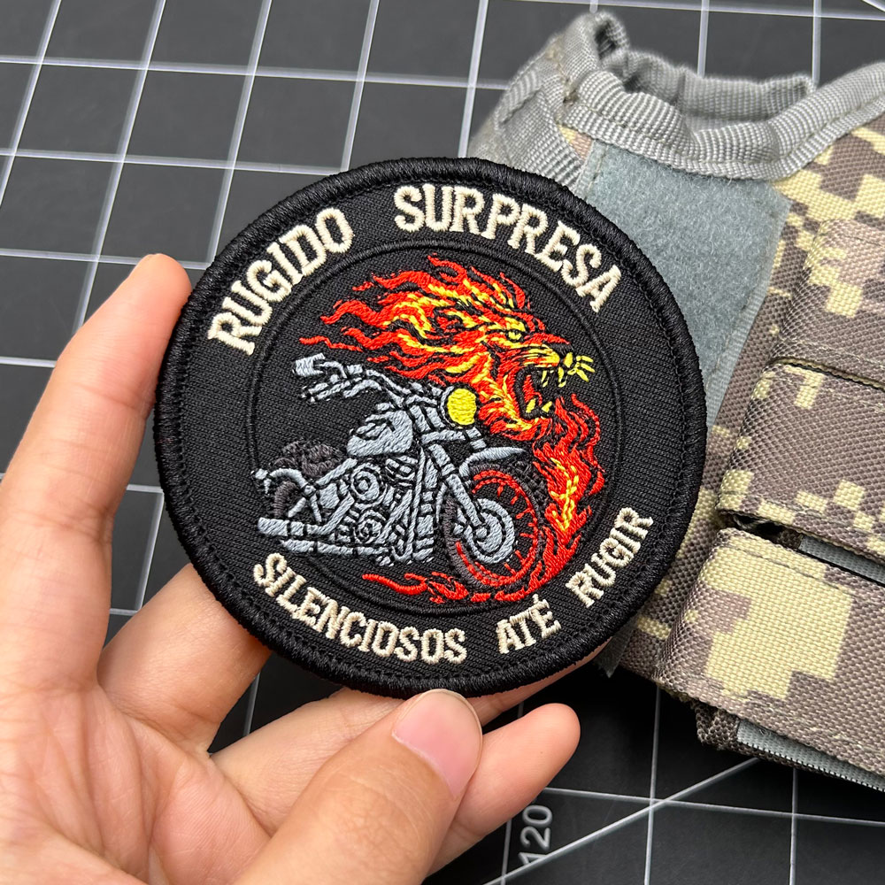 Flame Lion Motorcycle Embroidery Patch RUGIDO SURPRESA SILENCIOSOS ATÉ RUGIR Flag37-70C