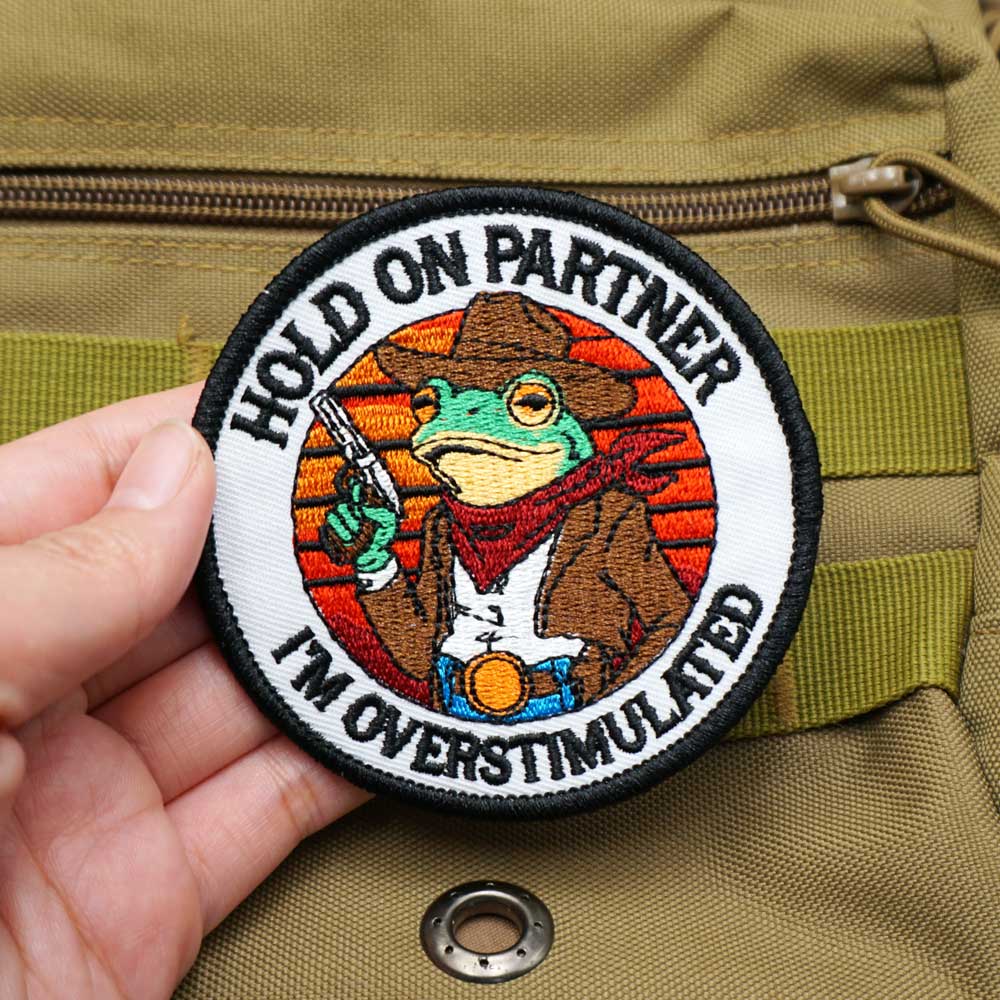 Frog Gunner Embroidery Patch HOLD ON PARTNER I'M OVERSTIMULATED Flag12-163C