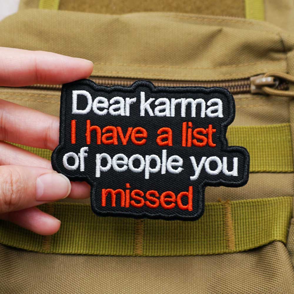 Funny Embroidery Patch Dear karma, I have a list of people you missed Flag12-168C