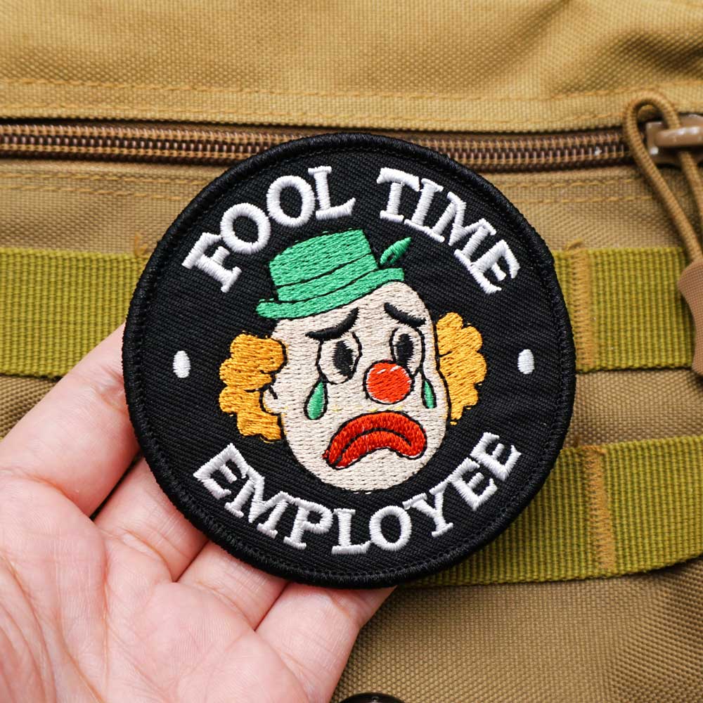 Funny Joker Embroidery Patch FOOL TIME EMPLOYEE Flag12-196C