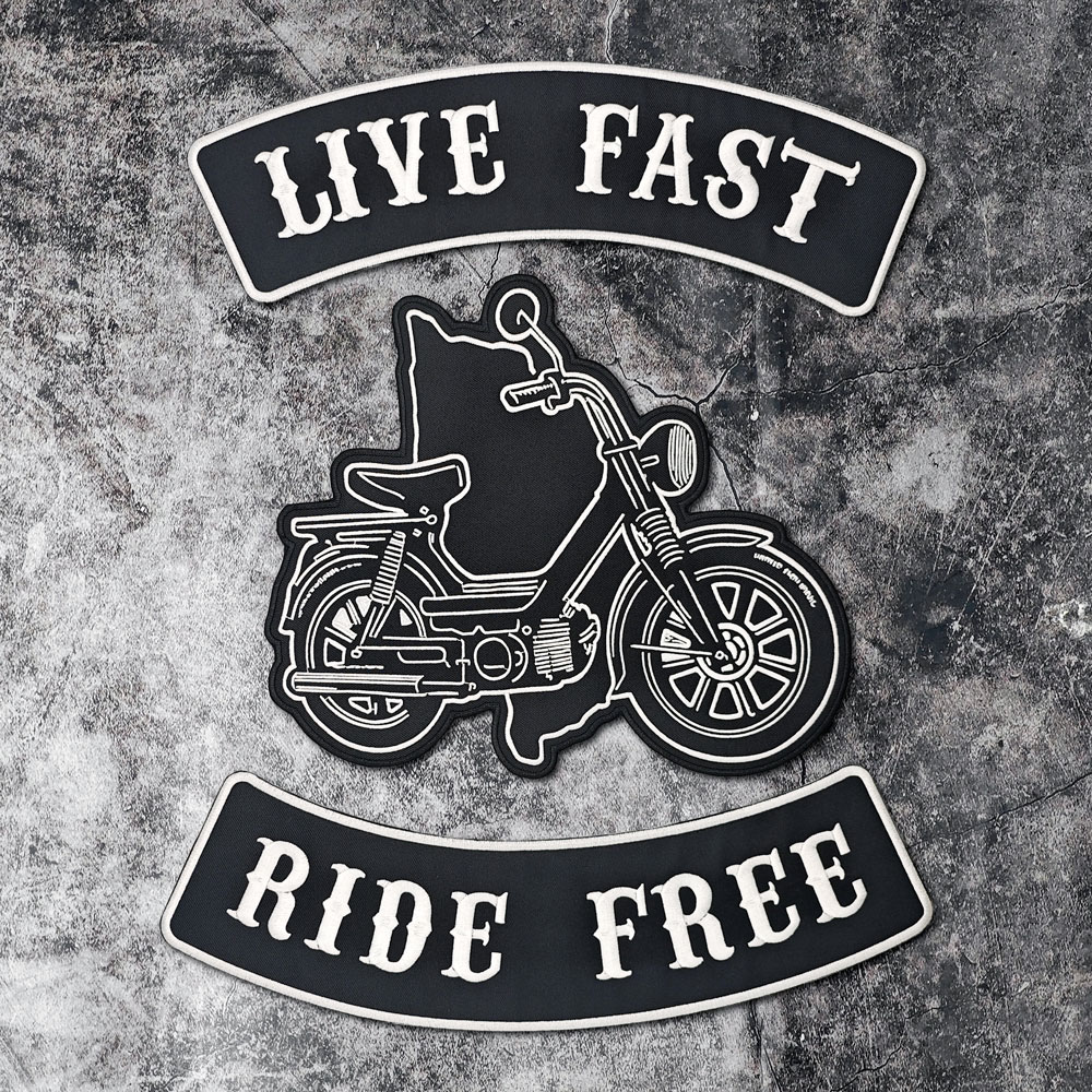 LIVE FAST RIDE FREE Large Size Motorcycle Rider embroidery patch L38