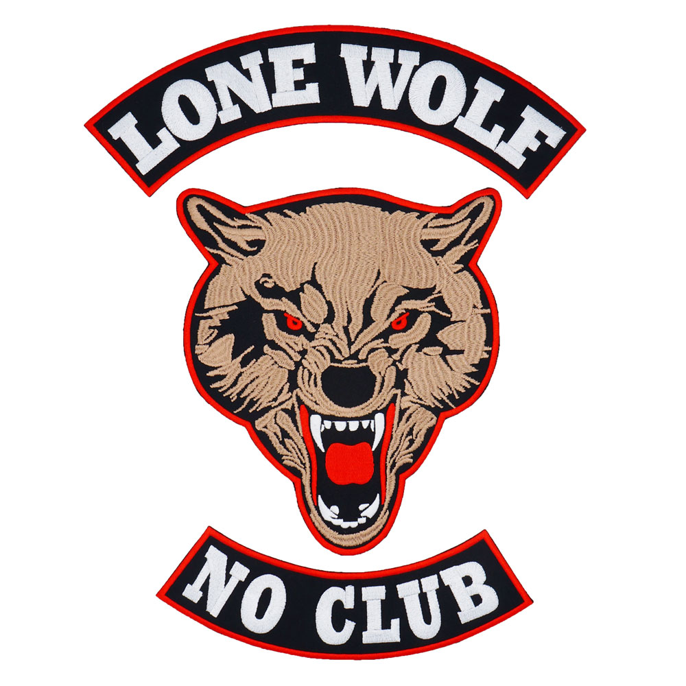 LONE WOLF NO CLUB large size Motorcycle Rider embroidery patch L1