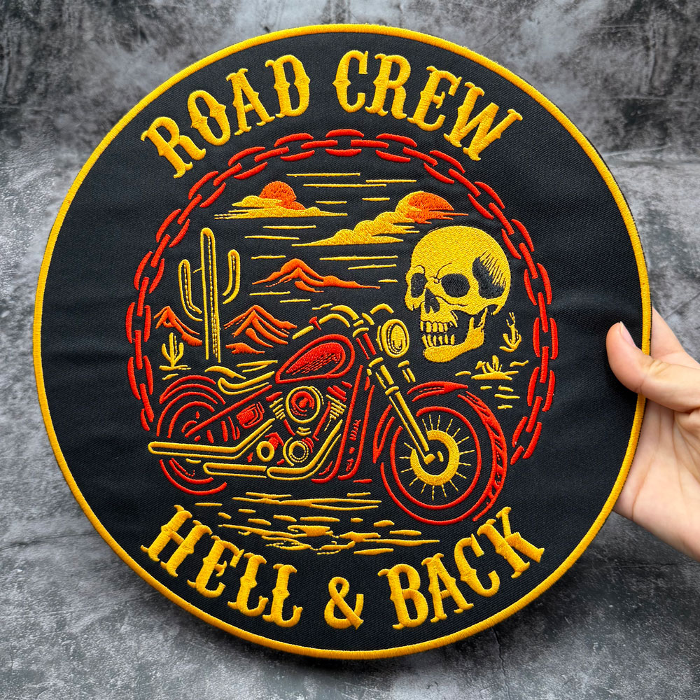 “ROAD CREW HELL & BACK” skeleton motorcycle Large Size Motorcycle Rider embroidery patch L9