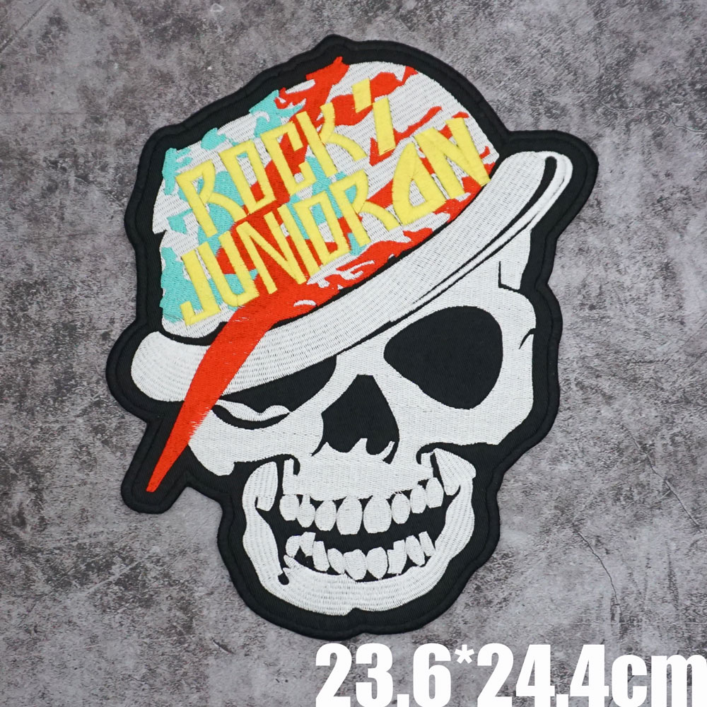 ROCK JUNIOR ON Hip-hop rock skull Large Size Motorcycle Rider embroidery patch L24