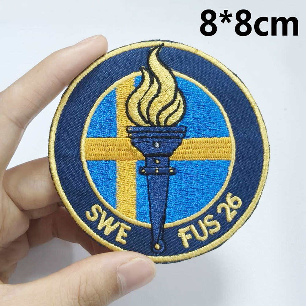 " SWE FUS 26 " Swedish Flag Torch Embroidery Badge Patch LE35-10