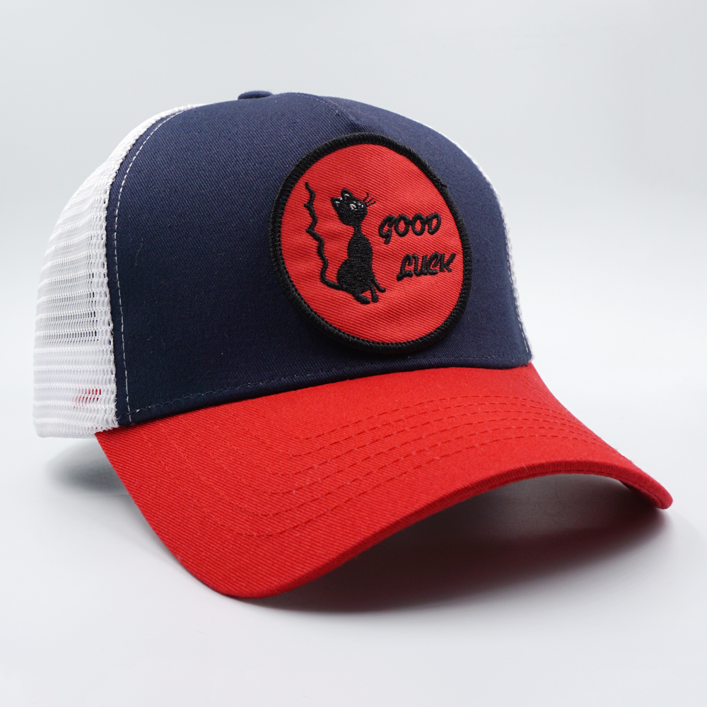 Vintage “ GOOD LUCK” Black Cat Embroidery Patch Trucker Cap PB54-3
