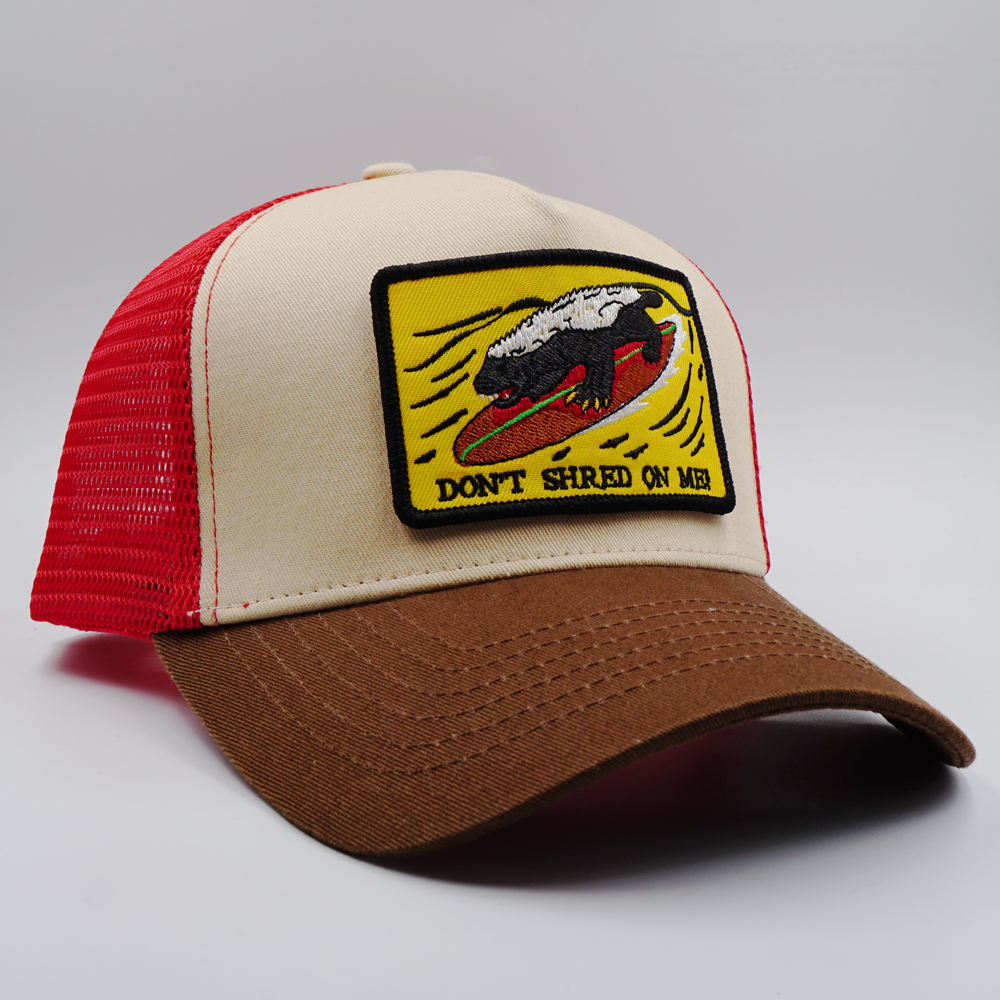Vintage “HONEY BADGER DON'T CARE” Honey badger surfing Funny Embroidery Patch Trucker Cap PB43-3