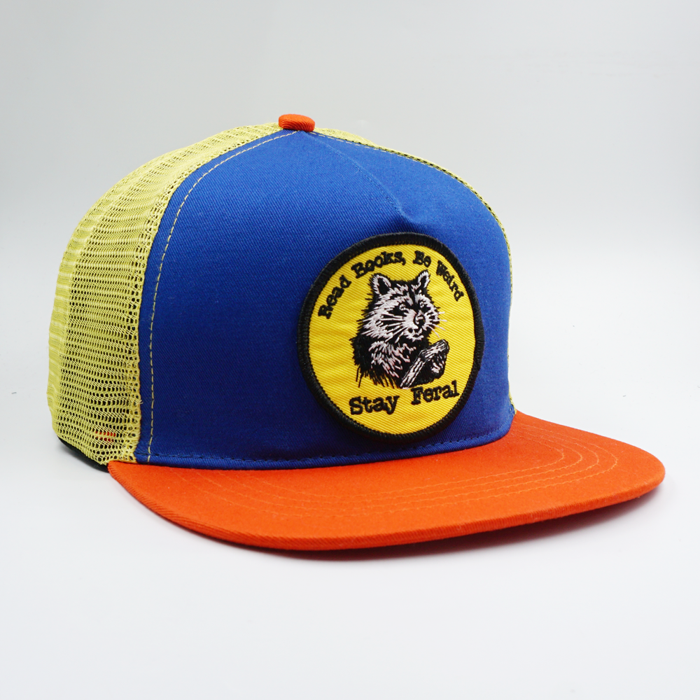 Vintage “Read Books, Be Weird, Stay Feral” Raccoon Embroidery Patch Trucker Cap PB57-3