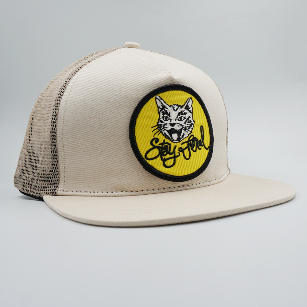 Vintage “Stay feral " Cartoon Cat Embroidery Patch Trucker Cap PB50-3