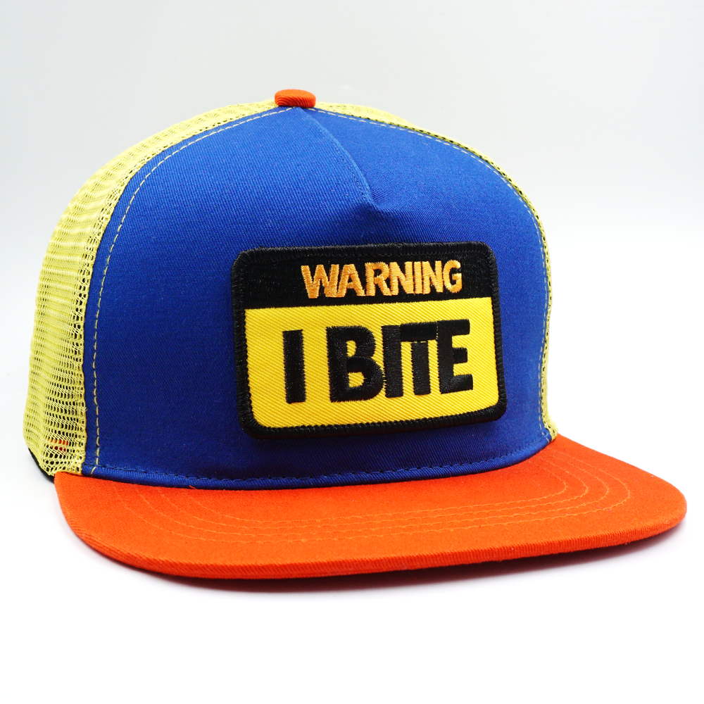 Vintage “WARNING I BITE” Funny Embroidery Patch Trucker Cap PB72-3