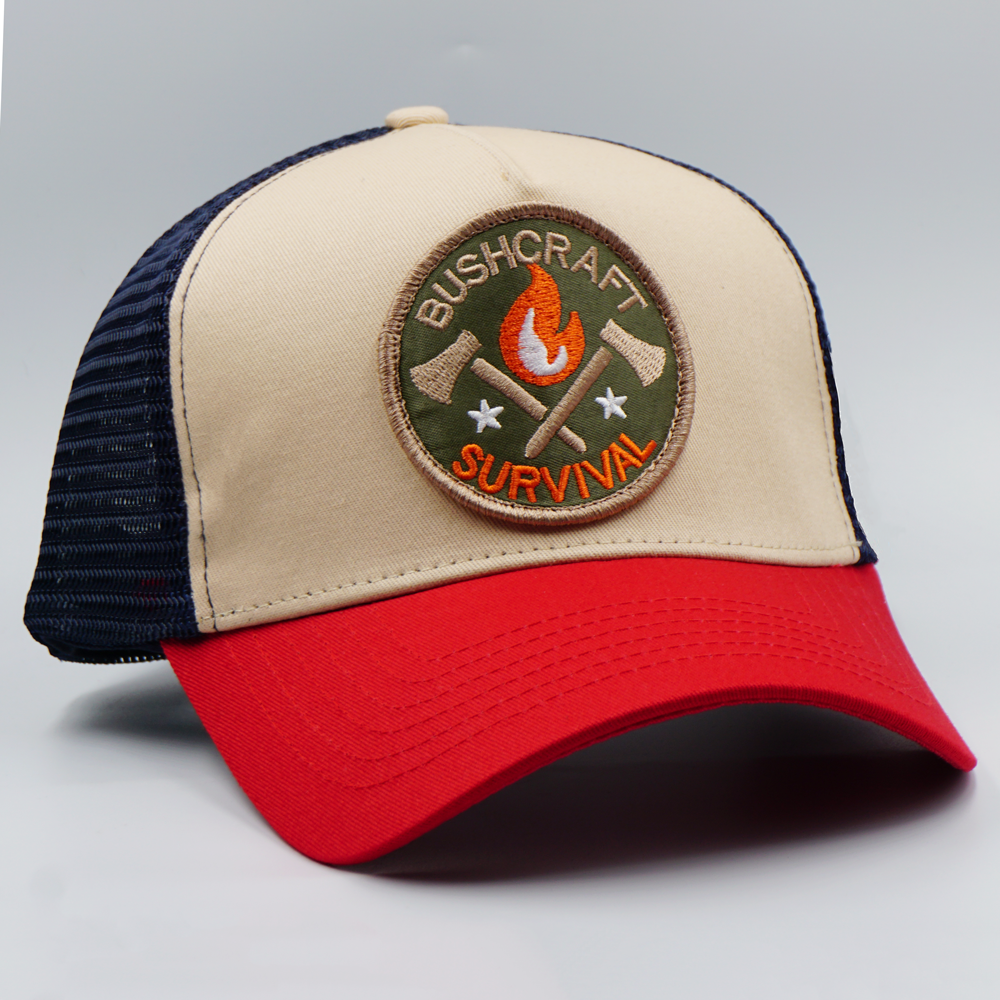 Vintage BUSHCRAFT SURVIVAL Outdoor Camping Bonfire Embroidery Patch Trucker Cap PB34-1