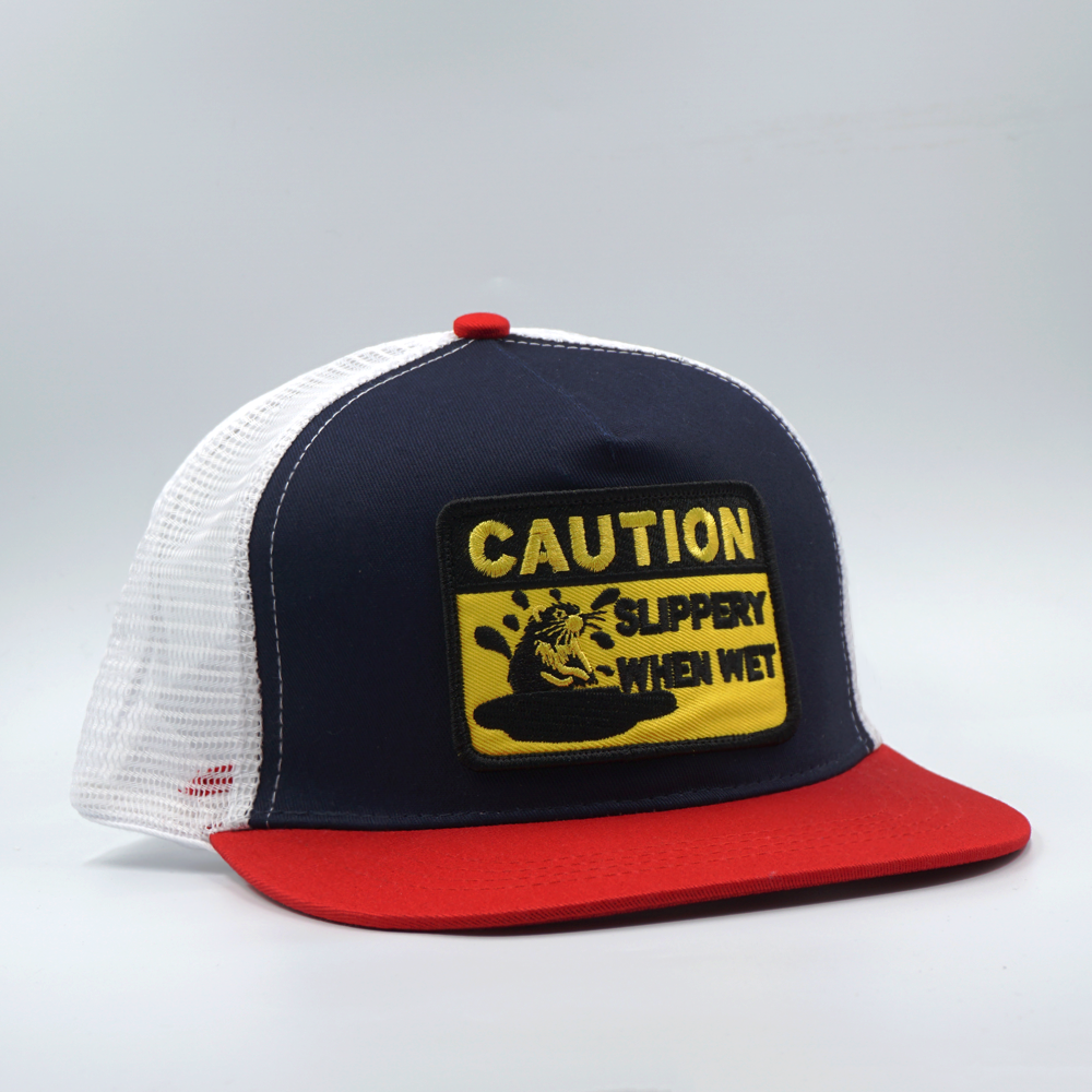 Vintage “CAUTION SLIPPERY WHEN WET” Embroidery Patch Trucker Cap A2/PB60-1