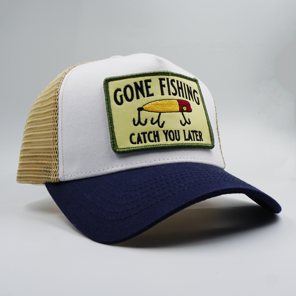 Vintage “GONE FISHING CATCH YOU LATER” Embroidery Patch Trucker Cap PB72-1